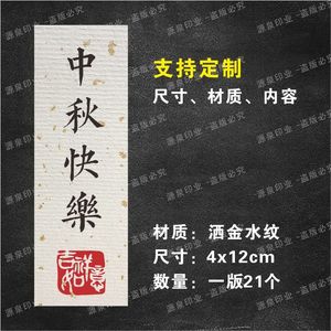 ハッピー中秋節 4x12cm/ステッカー 21 枚、散りばめられた金の水模様