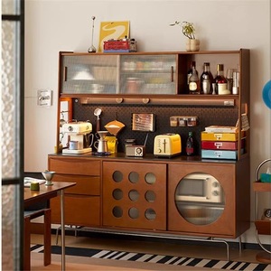 复古实木餐边柜靠墙一体北欧岩板储物置物柜客厅收纳边柜咖啡机柜