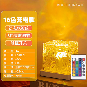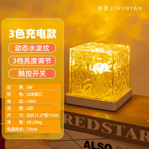 正方形の水の波紋の雰囲気の明かりの小さい夜の明かりのアイデアの女子学生のプレゼントのベッドの寝室の炎の極光の動態の電気スタンド