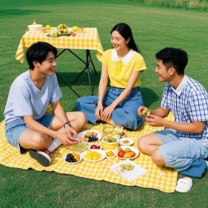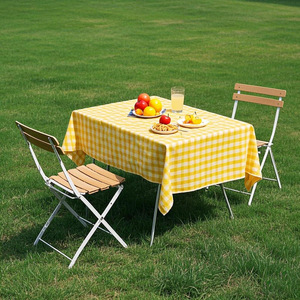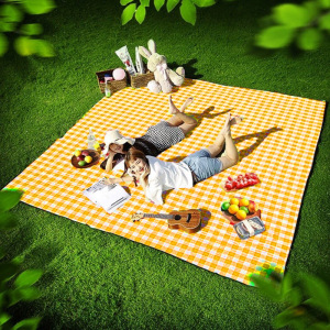 便利な黄白の格子の使い捨てのピクニックマットの屋外のピクニックのピクニックのキャンプの防湿マットのテントのマットのテーブルクロス