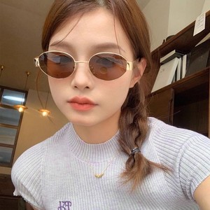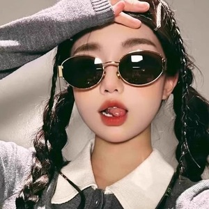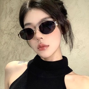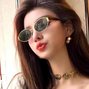 レトロ老銭風金属楕円形サングラス男女日焼け止め高級感小枠港風凹形サングラス