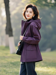 春の新型流行の爆発的な女性の突撃服の独特な年齢を減らすファッションの洋風の百合の紫色の帽子のコートの女性