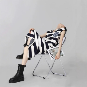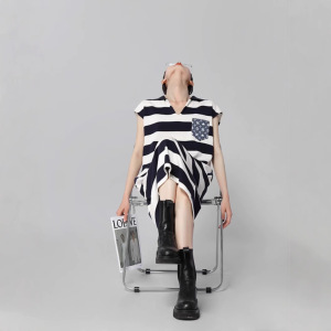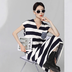 区里里/縞tシャツワンピースがきれいな夏2025新型vネックスカートが今年流行した