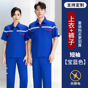 帯電防止夏用薄手ロイヤルブルー半袖スーツ(トップス+パンツ)