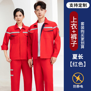 帯電防止夏用薄手赤長袖スーツ(トップス+パンツ)
