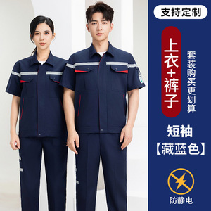 帯電防止夏用薄手紺半袖スーツ(トップス+パンツ)