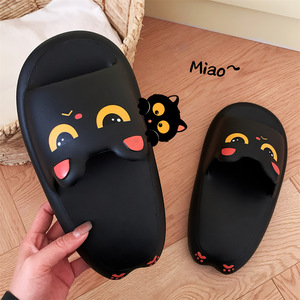 細くて怒っている黒い猫のスリッパ夏のカップルのかわいい趣味の家EVA柔らかい底の風呂は男女を引きずっている