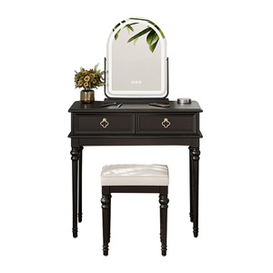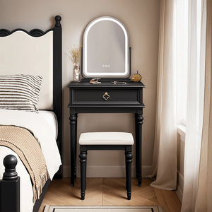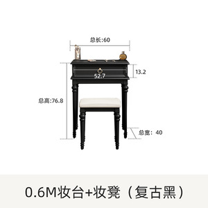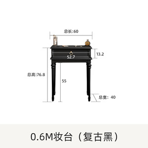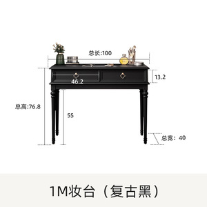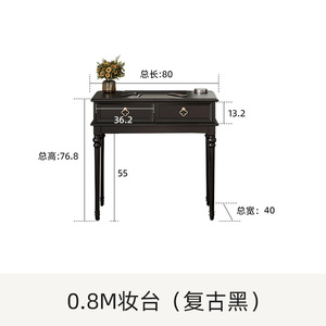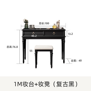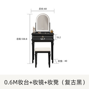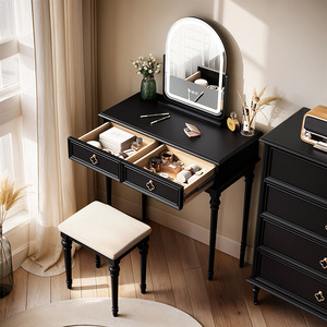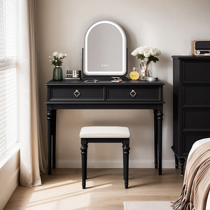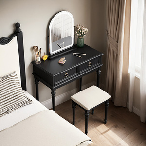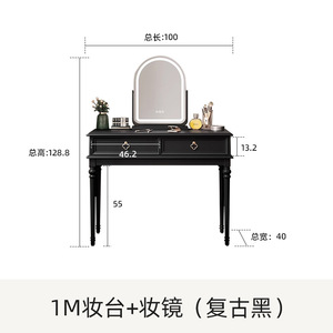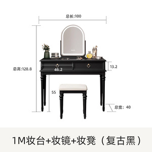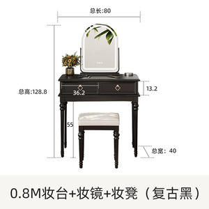 2025新型アメリカ式レトロ実木化粧台小型寝室黒色小戸型化粧テーブル中古風主臥