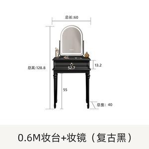 レトロブラック 0.6m [ドレッシングテーブル+アーチ型化粧鏡+化粧スツール]