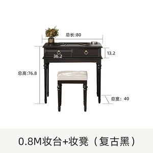 レトロブラック 0.8m [ドレッシングテーブル+アーチ型化粧鏡+化粧スツール]