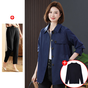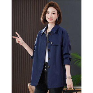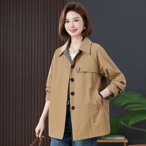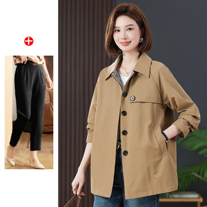 お母さんの秋の服装のカジュアルな風の服の中の長さの2025新型の中高年の女性の春秋のファッションのゆったりしている襟のコート