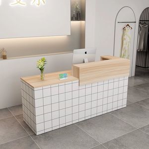 研修機関受付台シンプル現代服装店小型レジ店舗受付台ミルクティー店美