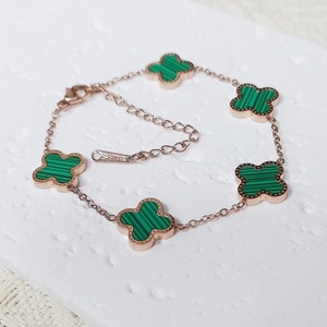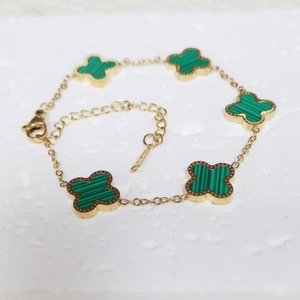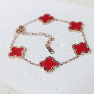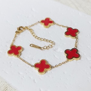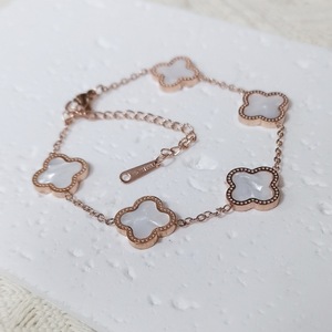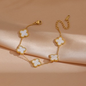 色褪せない五つ葉のクローバー チタン鋼ブレスレット 18Kゴールドメッキ おしゃれでクラシックな雰囲気 韓国風 ニッチ