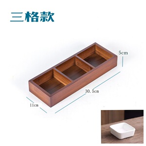 竹色の三仕切竹箱 + 白いディナープレート 3 枚