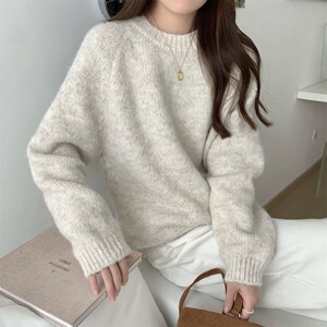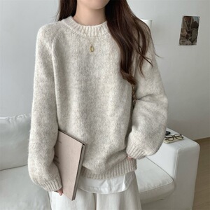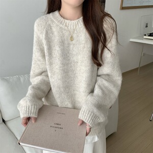 韓系乳fufu柔らかいモチモチ風セーターは秋の冬の純色のニットの怠惰でゆったりした丸首の長袖をかぶせて底を打ちます。