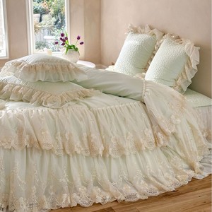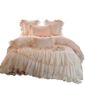 フランス風ロマンチックな高支密綿綿綿4点セットプリンセス風レース刺繍綿布団カバーベッドスカートベッド用品