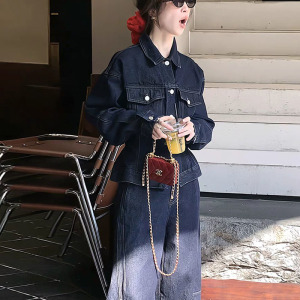 レトロins香港風カウボーイセット2025新型高級高腰ファッション工装上着2点セット肉隠し