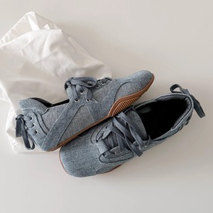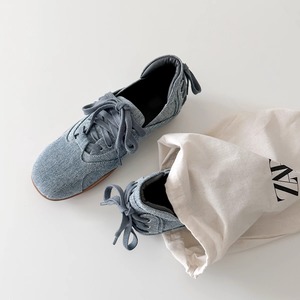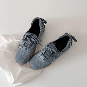 牛革版 ~ レトロなデニムのスポーツのバレエ靴の女性のカジュアルな靴のひもの丸い頭の小さい靴