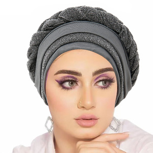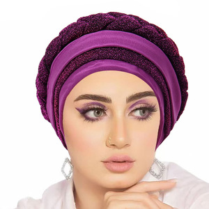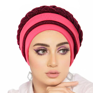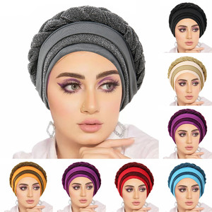 アマゾンの新型の明るいシルクのお下げのミルクの糸は髪のスカーフの帽子の2色を隠してムスリムのスカーフの帽子をつづり合わせます。
