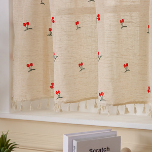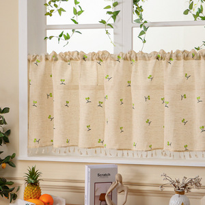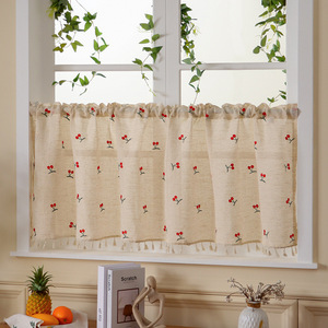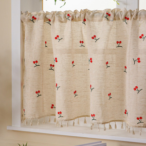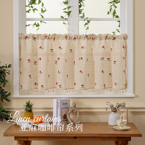 リネン刺繍入りコーヒーカーテン