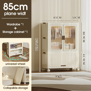 2942 57cm 1層ワードローブ+2層折りたたみキャビネット 透明色