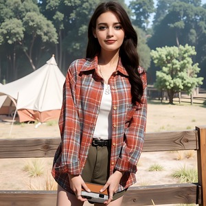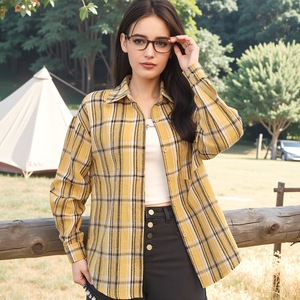 格子のシャツの感じの小さい大衆の新型のカジュアルな薄い金のデザインのアメリカのゆったりしている復古のシャツの長袖の上着のコートの女性