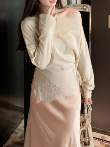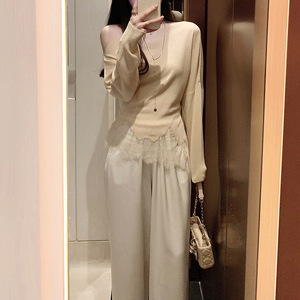 レース物語超細いウールレースレザー刺繍ニット女性の初秋の新作気質は肩の上着に合わせています。