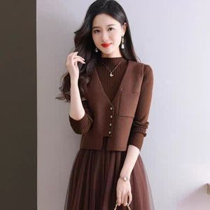 ニットの毛糸の馬甲の女性の春の外は新型の袖なしのセーターとスカートを掛けて小さい香ばしい風馬の挟みを重ねます。