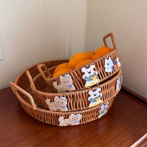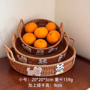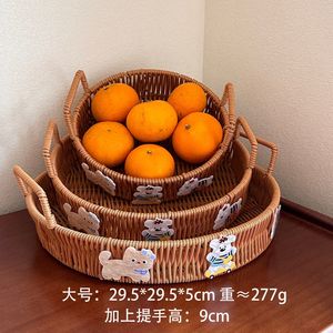 元槻竹木-模造藤編収納かご手提げパン菓子皿果物かご間食キャンディーかご収納トレイ