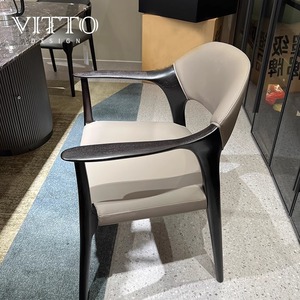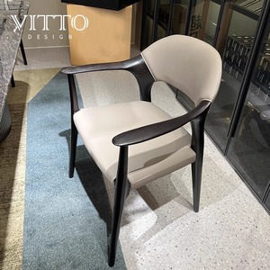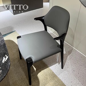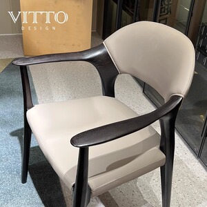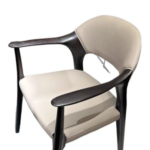 現代のシンプルな木製の本革の食事椅子の家庭用のイタリア式の極めて簡単な手すりのシングルチェアのテーブルと椅子の主人のお茶の椅子