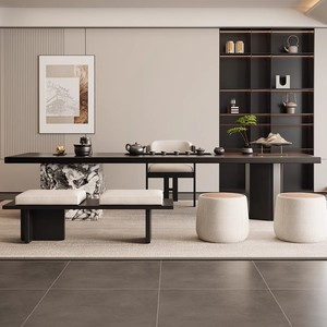 寂しい風の実木の茶卓の島の台の1体の黒色の軽くて豪華な高級感の茶台の1セットのデザイナーの新型の茶卓