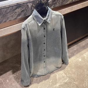 25春季新款小众复古洗水渐变宽松中长款牛仔衬衫外套女款