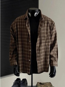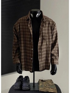 アメリカのレトロなヴィンテージの格子のシャツの男性のタイプの春のごろつきのかっこいい日本は長袖のシャツの中で上着を掛けます。