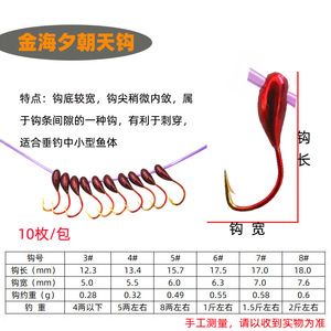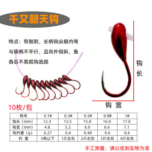45度の朝天フックは10枚の逸品の朝天フックのフックの金海夕金の袖の伝統的な釣りフックの野釣りの千又を模倣します。