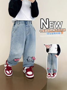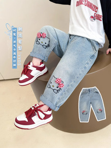 ガールズジーンズ春秋2025新型子供早春kt猫ズボン洋気女赤ちゃんハロンおじさんズボン潮