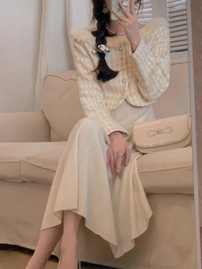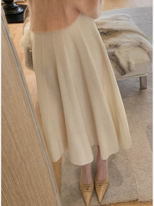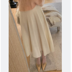 ホワイトウールハイウエストプリーツスカート秋冬万能スカートロングスカート女性用