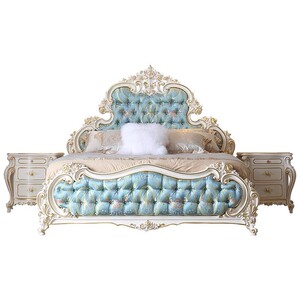 フランス式宮廷別荘の主なベッドの豪華な実木家具は1.8メートルの大きいベッドのヨーロッパ式の彫刻の2人の結婚ベッドを掛けます。