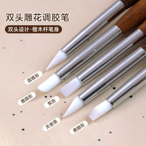 ネイルアートのダブルヘッドの彫刻筆のシリカゲルエンボス檀木の筆の身の金属のゴムの多機能のネイルアートシリカゲルペンのツール