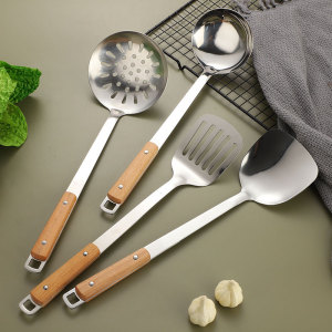 ステンレス鍋シャベルセット炒め物シャベル鍋スープスプーン漏れスプーンパーマ防止角木柄耐高温調理器具用品
