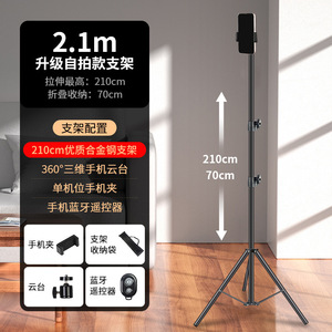 【2.1m厚三脚】一体型クリップ+ボールヘッド+収納バッグ+Bluetoothセルフィー