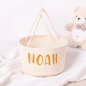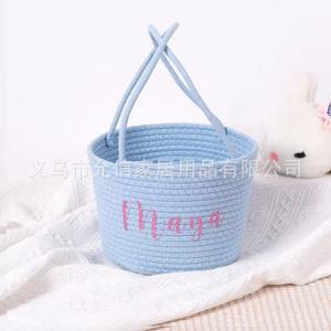 綿の糸の編み物のかごの収納かごの漫画の手提げの貯蔵の桶の丸い蓋のデスクトップのごみの箱