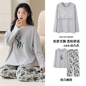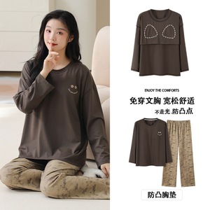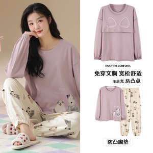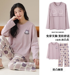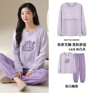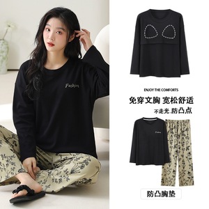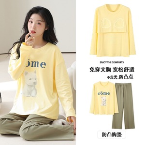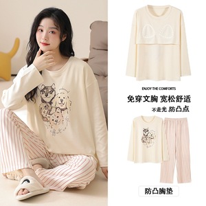 抗菌純綿胸付きパジャマ女性長袖春秋冬レジャーアニメ甘い家庭服2点セット