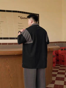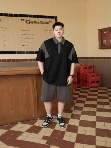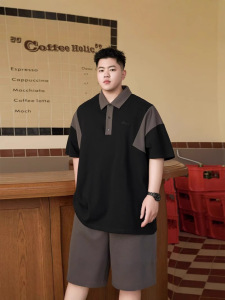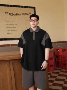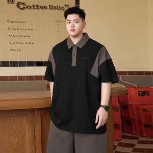 ファッションブランドの大きいサイズのメンズの夏の新型は半袖のpoloシャツの男のデブのプラスの太った男のプラスの大きいサイズのゆったりしたカジュアルな半袖をつなぎ合わせます。