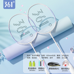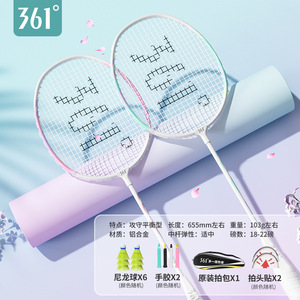 361 ° 正規品バドミントンラケットダブルショット超軽量耐打高弾力プロ成人高颜値学生初心者