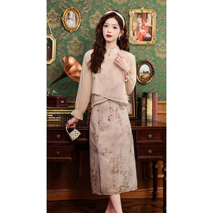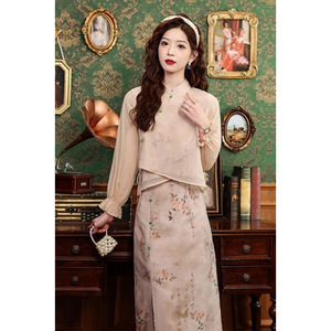 女性のセット2025春の新型の新中国式のボタンの不規則な上着の花が咲いています。