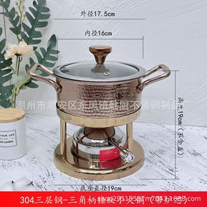 304三層の鋼のハンマーの紋様の鍋の電磁ストーブの小さいスープの鍋の1人の小さい鍋の空気入れるストーブの心のアルコールのストーブの小さい鍋