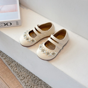 女の子の王女の風の靴2025春秋の新型の子供の口の靴のファッションの女性の赤ちゃんの真珠のメアリーの靴