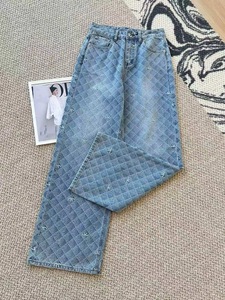 2025春夏新作小香菱格プリントグラデーション色ストレートジーンズ