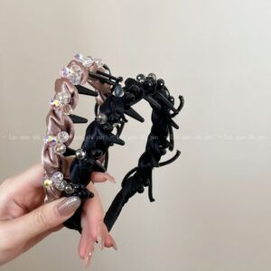 インターネット有名人ブロガーの絶妙なリボンラインストーンヘッドバンド、歯付き高頭蓋骨、ハイエンドヘッドバンド、ファッショナブルなプリーツヘアピン