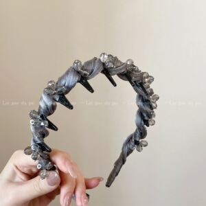 絶妙で軽い高級ラインストーンヘアピン巻きヘアフープ春の新しいハイエンドヘッドバンド気質高頭蓋歯付きヘアピン